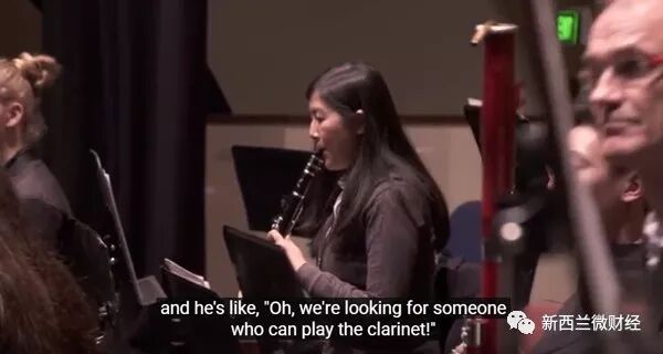 业余生活方面,我从小学就学单簧管,有一次,我遇到了Manawatu青年交响乐团的指挥,我就告诉他,“Hey,我会玩单簧管。”