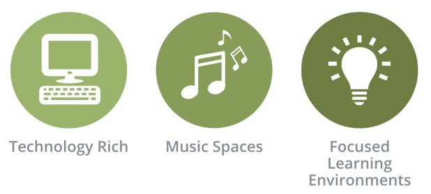 配备声学设计的灵活的学习空间:提供方便学生自习使用的多种空间,包括适合团队或小组使用的讨论室。这些区域围绕每个主题的不同,配备了相匹配的专业设备。